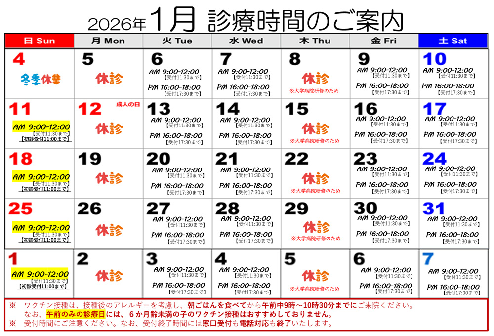 診療日のお知らせ