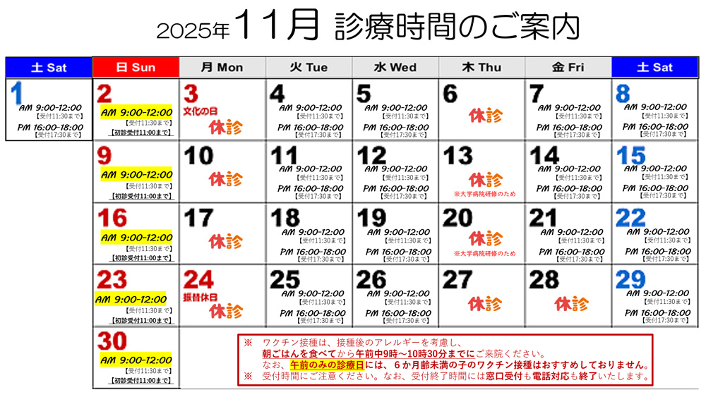 診療日のお知らせ
